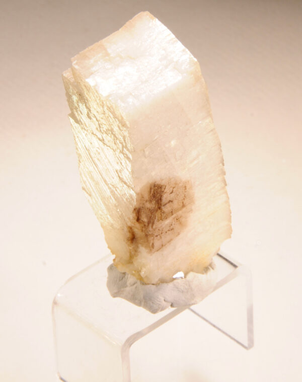Pearly white prismatic crystal of the feldspar variety adularia, from Tavetsch in Switzerland. Ex. Carolyn Reynold.