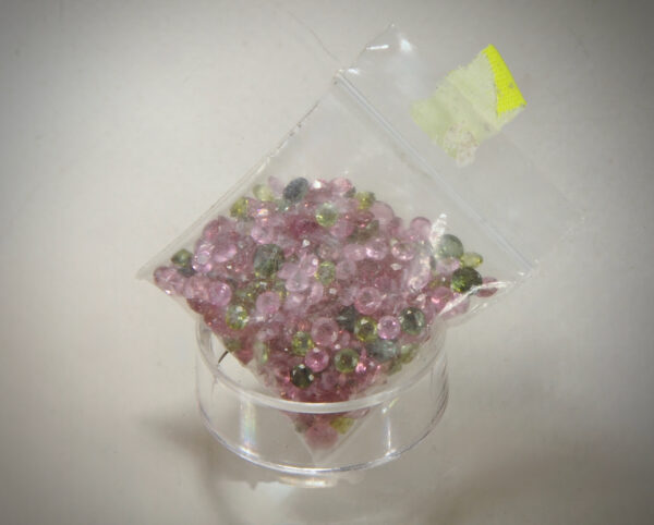 Bag of 330+ small cut pink and green elbaite gemstones.