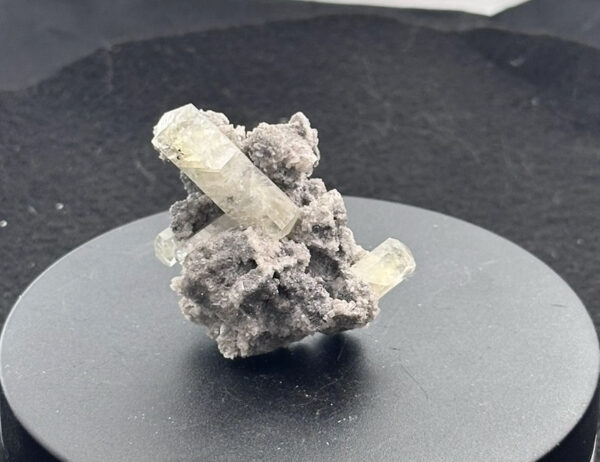 A classic pale yellow “nailhead” calcite crystal on matrix, from the Viburnum Trend in Missouri, USA, likely from the Sweetwater Mine.