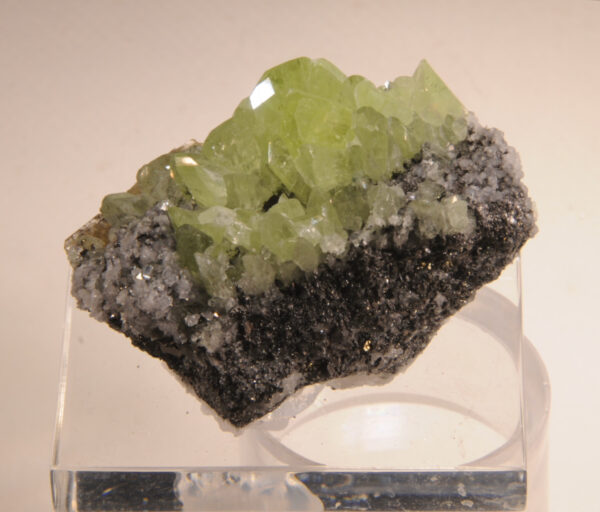 A showy cluster of green diopside crystals on matrix, from Merelani in the Arusha District of Tanzania.