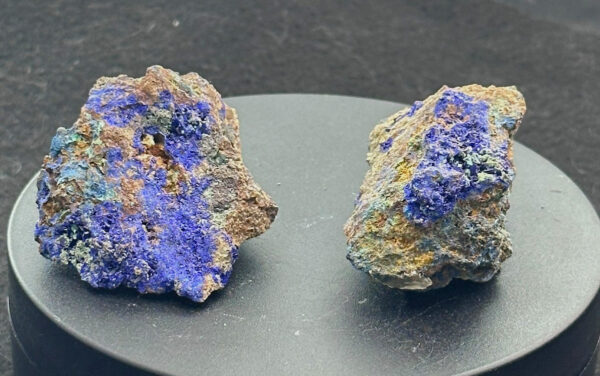 A pair of colorful Bisbee, Arizona, specimens of bright blue azurite and nicely contrasting green malachite. Ex. Stephen Gerome, with StoneTrust label.