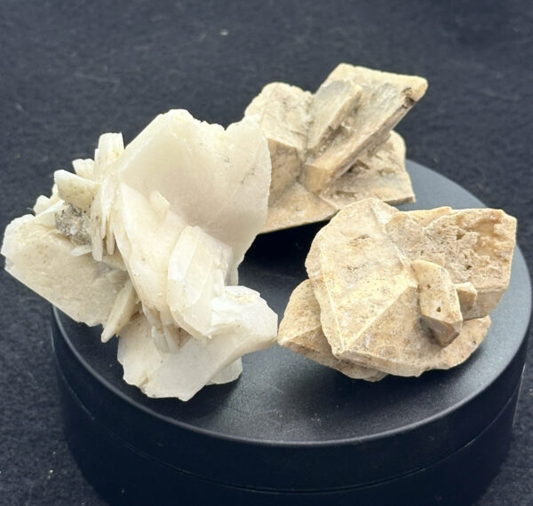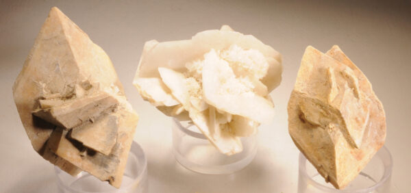 Two fine examples of glauberite roses from Boron, California, ex. Carolyn Reynard, and a bright white gypsum rose from Texas.