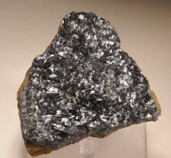 A large hand specimen with one face completely covered in glossy black manganite crystals, from the Caland Mine in Atikokan, Ontario, Canada. Ex. Carolyn Reynard, James Zigras, and A. E. Seaman Mineral Museum (Michigan Tech).