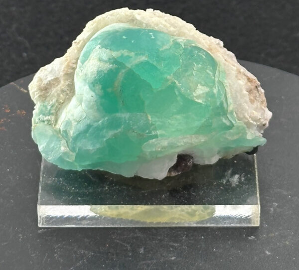 Intense sea green ball of smithsonite on contrasting white matrix. Metropolis Fine Minerals and 2013 BMC Auction labels.