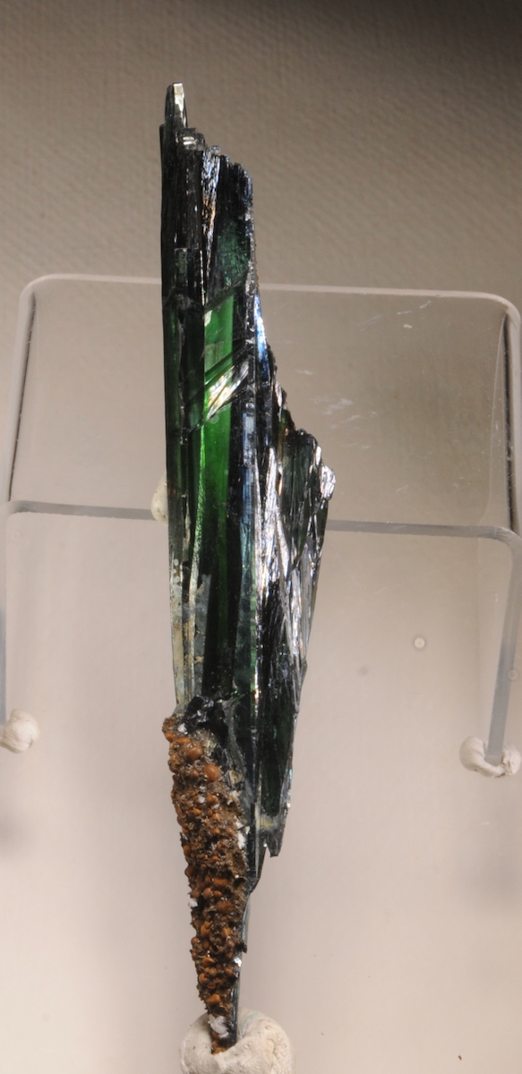 Large cluster of deep green vivianite blades from Brazil. This is a relatively new and different locality for the species, which is more commonly found in neighboring Bolivia.